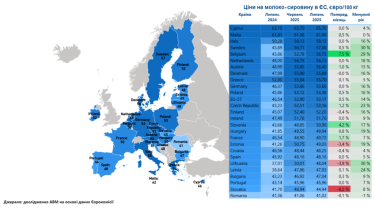 Найдорожча молоко-сировина – на Кіпрі (65,70 євроцентів за кг) та Мальті (61,90 євроцентів за кг). Найнижчі ціни за молоко отримують фермери у Румунії (41,02 євроцентів за кг) та Словаччині (44,94 євроцентів за кг).