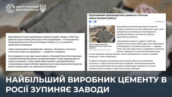 Провідний цементний гігант рф припиняє роботу підприємств: пояснення від Центру протидії дезінформації