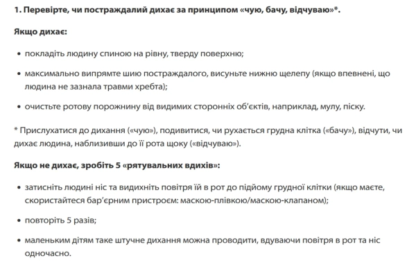 Якщо людина, яку витягли з води, не реагує на вас, у ЦГЗ рекомендують викликати екстрену медичну допомогу за номером 103 чи 112 та дали низку порад.
