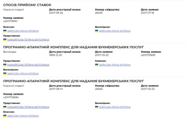 Раніше ми писали про тісний зв’язок власників лікарні “Одрекс” з гральним бізнесом – власне назву “Одрекс” спочатку мала компанія з виготовлення гральних автоматів. Крім того, на Зайкову зареєстровані два варіанти торгової марки “Одрекс” під якими, зокрема, надавалися послуги з гри на автоматах. Вона ж зареєстрована розробницею корисної моделі “Спосіб прийому ставок” та винаходу і корисної моделі “Програмно-апаратний комплекс для надання букмекерських послуг”. І справді далека від медицини, як і зазначала сама розробниця.