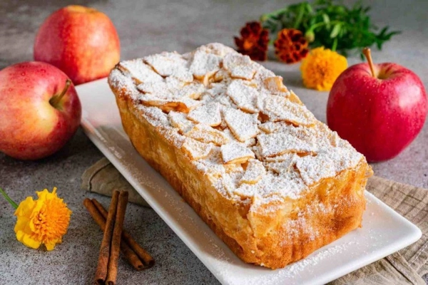 Приготування: Збити яйця з цукром та сіллю, влити сироп і олію. Додати просіяне борошно з розпушувачем. Вмішати нарізані яблука. Викласти у форму з пергаментом, випікати 45–60 хв при 180–200°C.