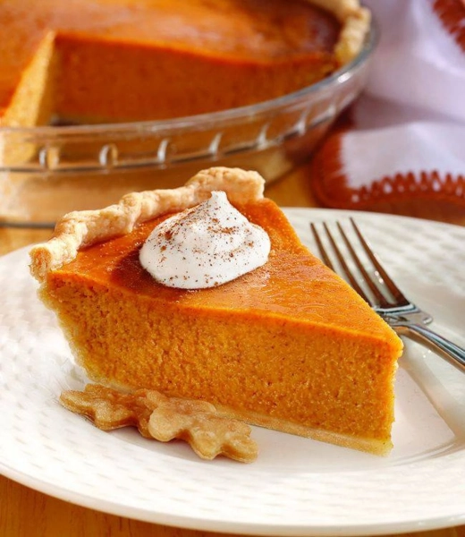 Приготування: Запекти гарбуз при 200°C 30–40 хв, перебити в пюре. Змішати сир, цукор, корицю, крохмаль, яйця, додати пюре. Подрібнити печиво, змішати з маслом, викласти у форму з бортиками. Наповнити сирно-гарбузовою масою, випікати 40–50 хв при 180°C.
