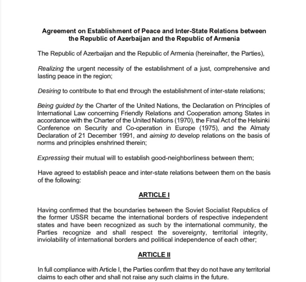 Мирна угода складається з 17 статей, домовленості щодо яких було узгоджено навесні 2025 року.