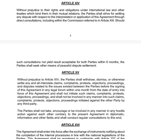 Угода також включає положення про створення двосторонньої комісії для контролю за виконанням домовленостей і механізмів мирного врегулювання можливих суперечок.