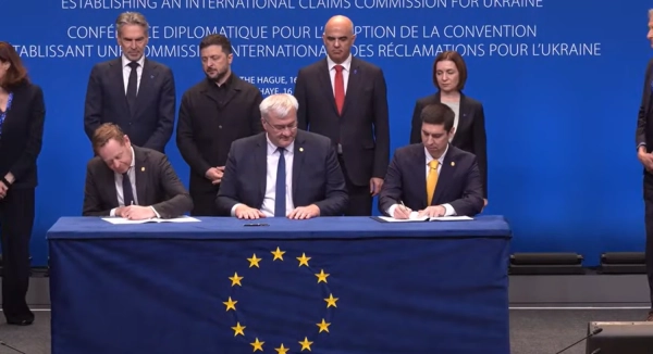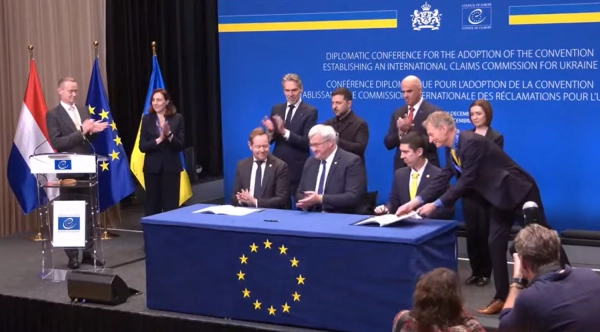У Гаазі сьогодні, в рамках відповідної роботи під егідою Ради Європи, затвердили конвенцію про заснування міжнародної комісії з питань компенсації для України шкоди, завданої росією, і першими її завізували Україна, Нідерландське Королівство і Молдовська Республіка, про це інформує УНН, транслювання відбувалося Офісом Президента.
