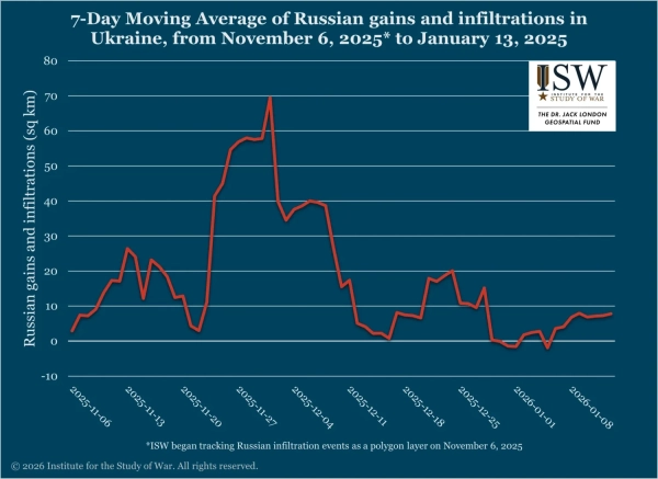 Поступ росіян став повільнішим наприкінці грудня 2025 року та на початку січня 2026 року. Вірогідно, цьому посприяли менш сприятливі кліматичні умови та згортання зусиль щодо дотримання “умовних строків” наприкінці року.