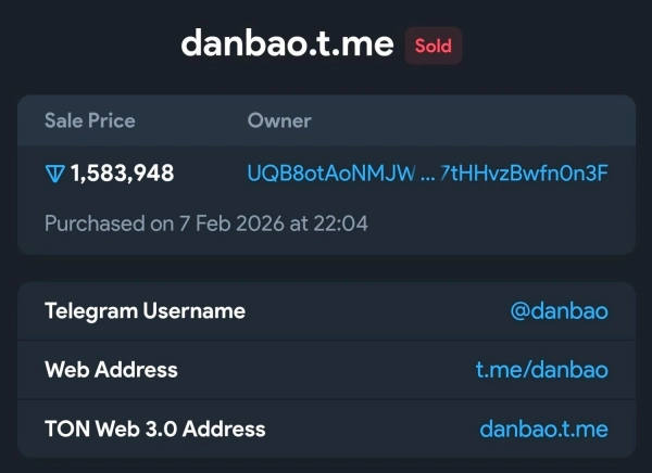 Ім’я користувача “danbao” було реалізовано за суму, що перевищує 2,1 мільйона доларів, ставши найдорожчим ім’ям для загального користування в Telegram. Придбавець з Китаю виділив 1 583 948 TON за цей нік, який означає “гарантія” або “агент”.