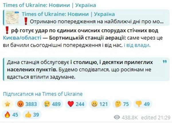 Декілька днів тому ряд Telegram-каналів повідомив про те, що росія нібито може планувати атаку на Бортницьку станцію аерації — головні каналізаційні очисні споруди Києва, які знаходяться в однойменному мікрорайоні на півдні столиці.
