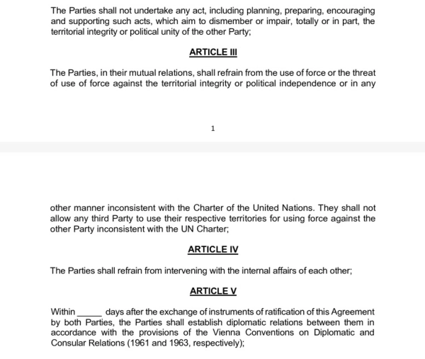 Мирна угода складається з 17 статей, домовленості щодо яких було узгоджено навесні 2025 року.