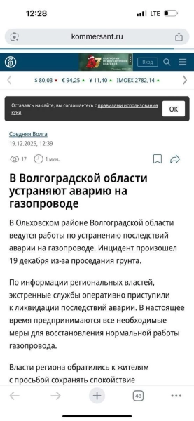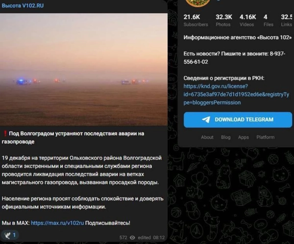 У п’ятницю, 19 грудня, у волгоградській області рф сталося чергове дивне “осідання ґрунту”, що призвело до виходу з ладу магістрального газопроводу “Центральна Азія – Центр”. Про це інформує УНН, посилаючись на джерела.