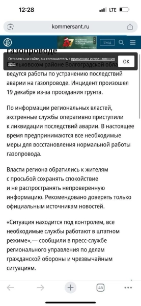 Підкреслюється, що незважаючи на “незначність” випадку, вже через декілька годин до місця аварії масово прибули транспортні засоби екстрених та спеціалізованих служб. Імовірно, щоб задокументувати черговий унікальний природний феномен: ґрунт, який з невідомих причин вибірково осідає під стратегічною газовою інфраструктурою.