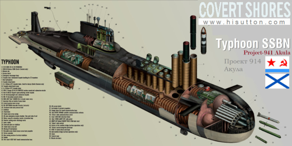 Внутрішня будова радянських атомних підводних човнів проекту 941 “Акула”, ілюстративна інфографіка від H I Sutton